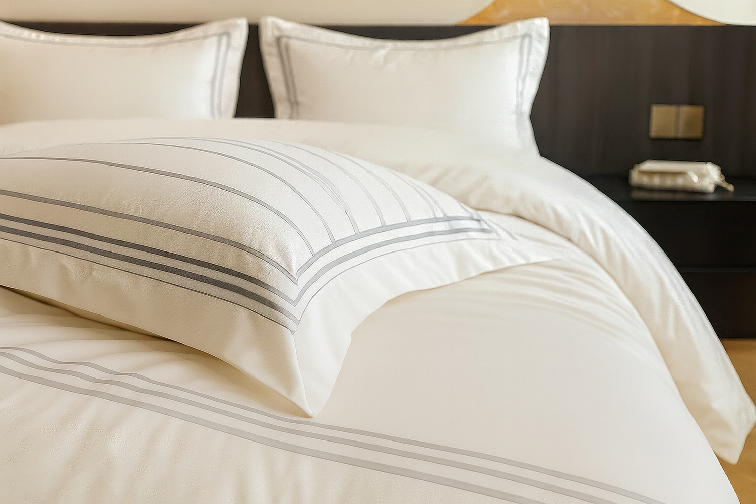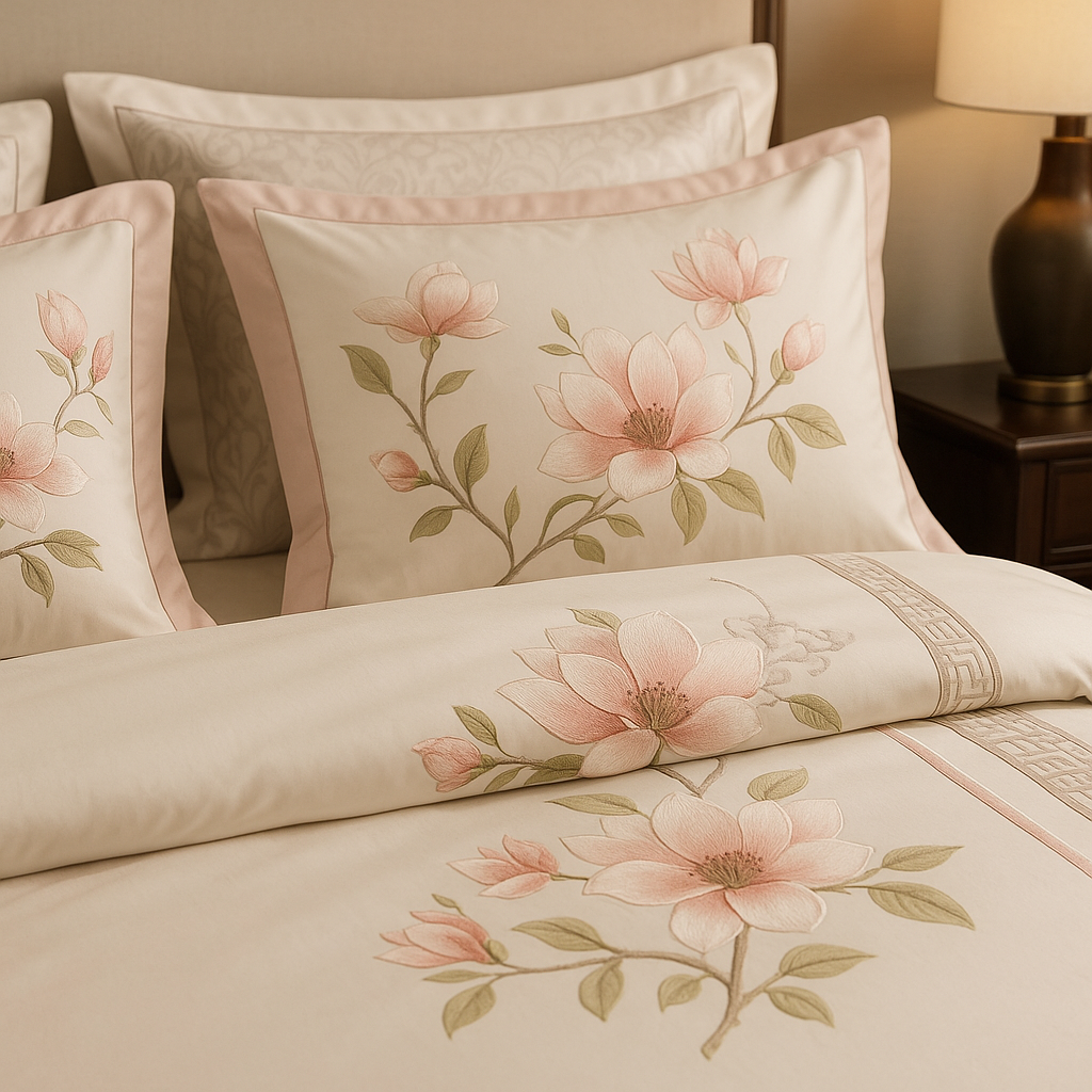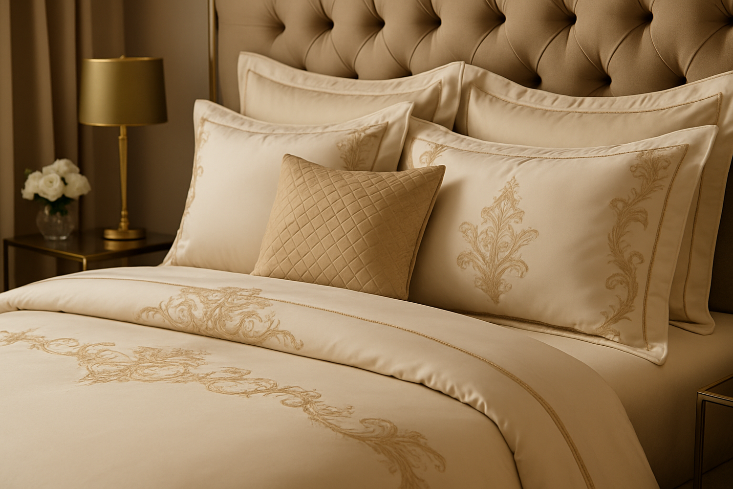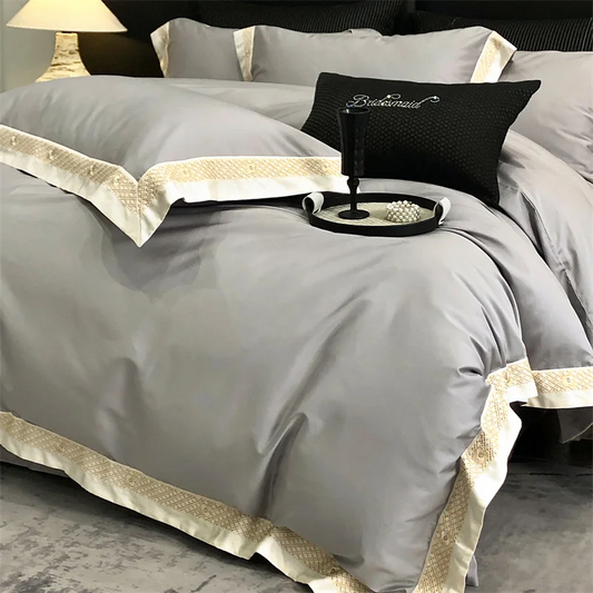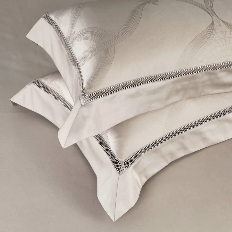 The Glanzreich bedding set embodies subtle, refined comfort. Made from 800-thread-count jacquard cotton, it offers a rich, soft texture that makes every night a sensual experience. The natural sheen of the fabric highlights the elegant gold tone, while the high-quality workmanship ensures durability, breathability, and timeless elegance. A delicate touch of comfort—noticeable at first contact, unforgettable forever.