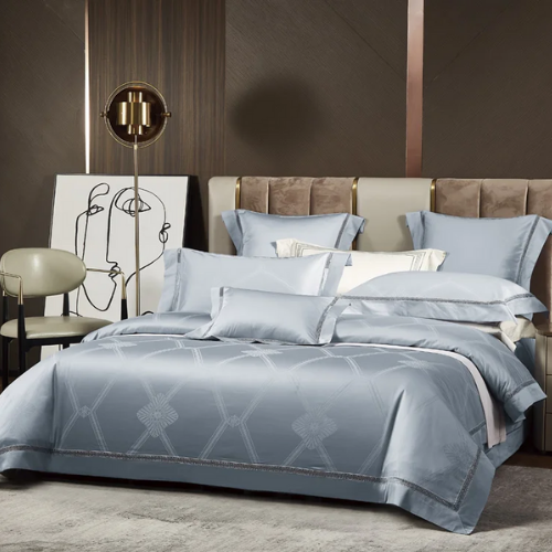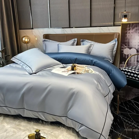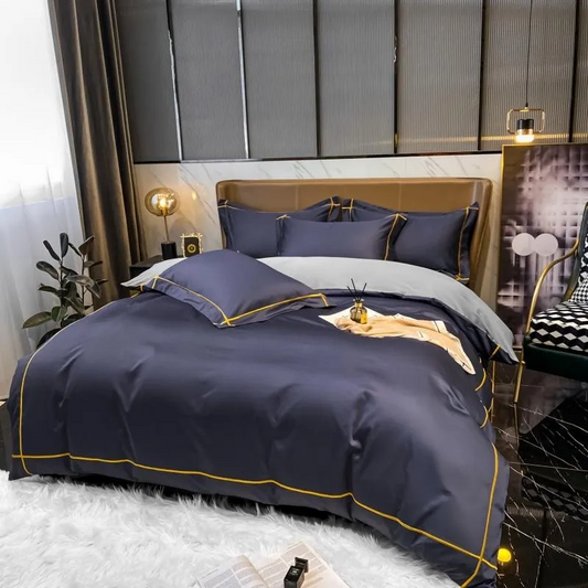 Elmsen Duvet Cover Set in Egyptian Cotton 600 Thread Count | Blue with Black